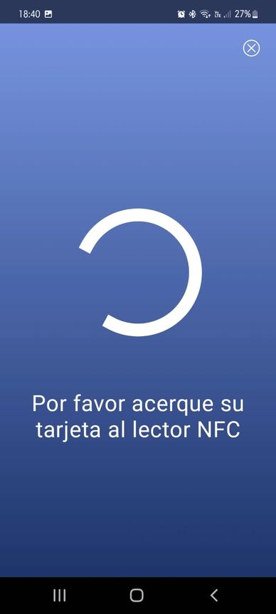 Pantalla que indica que es posible acercar la tarjeta para consultar su saldo.