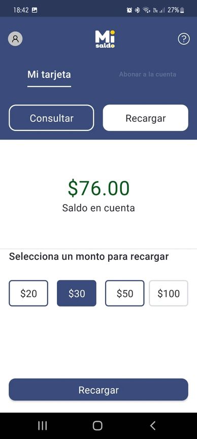 En este pantalla se puede consultar o recargar saldo a la tarjeta de prepago.